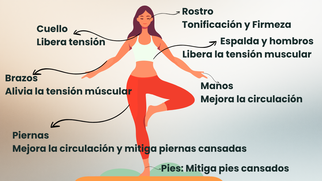 - Alivio de la tensión: El masaje con Gua Sha alivia la tensión proporcionando un efecto calmante y revitalizante en el cuerpo.