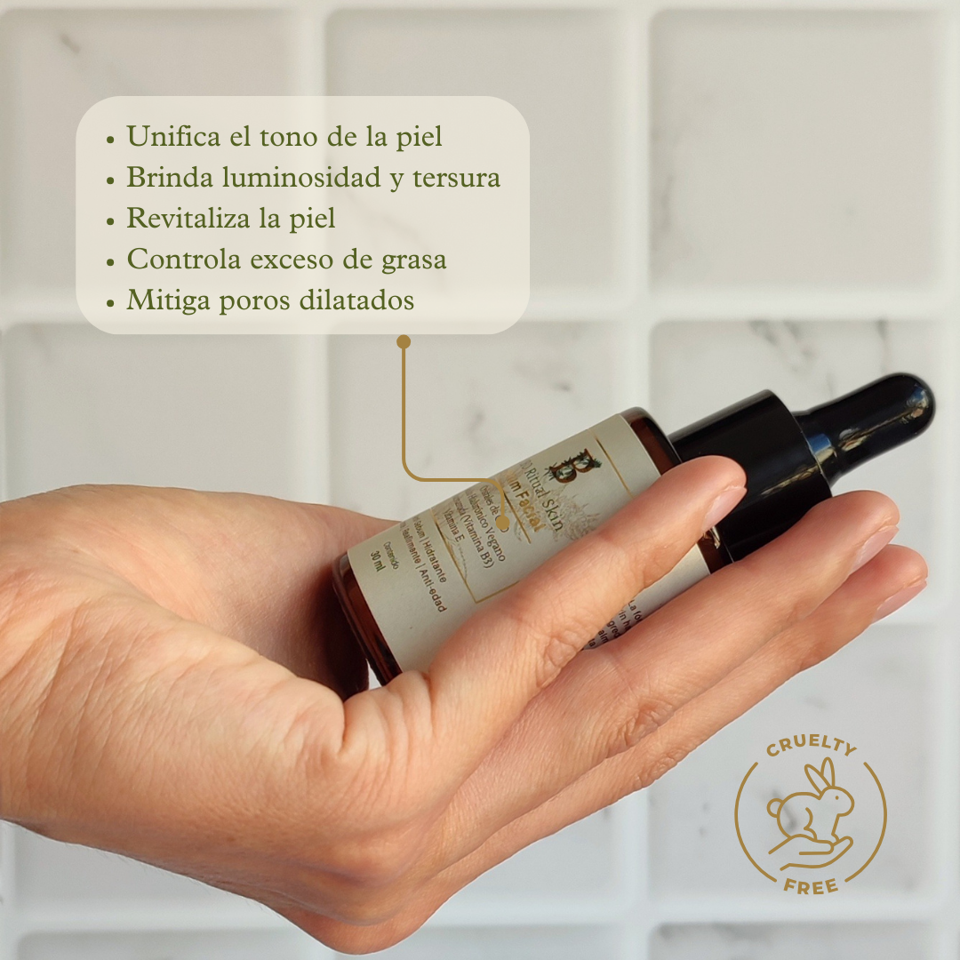 Mezcla poderosa de Niacinamida, Ácido Hialurónico Vegano y Vitamina E.