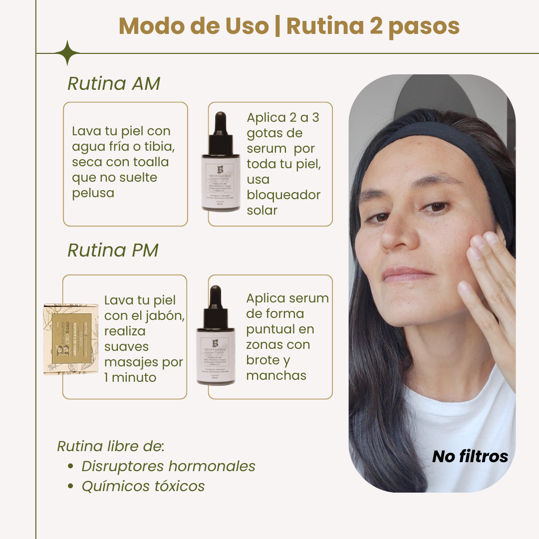 Una rutina simple y natural con solo dos pasos: jabón y serum.
