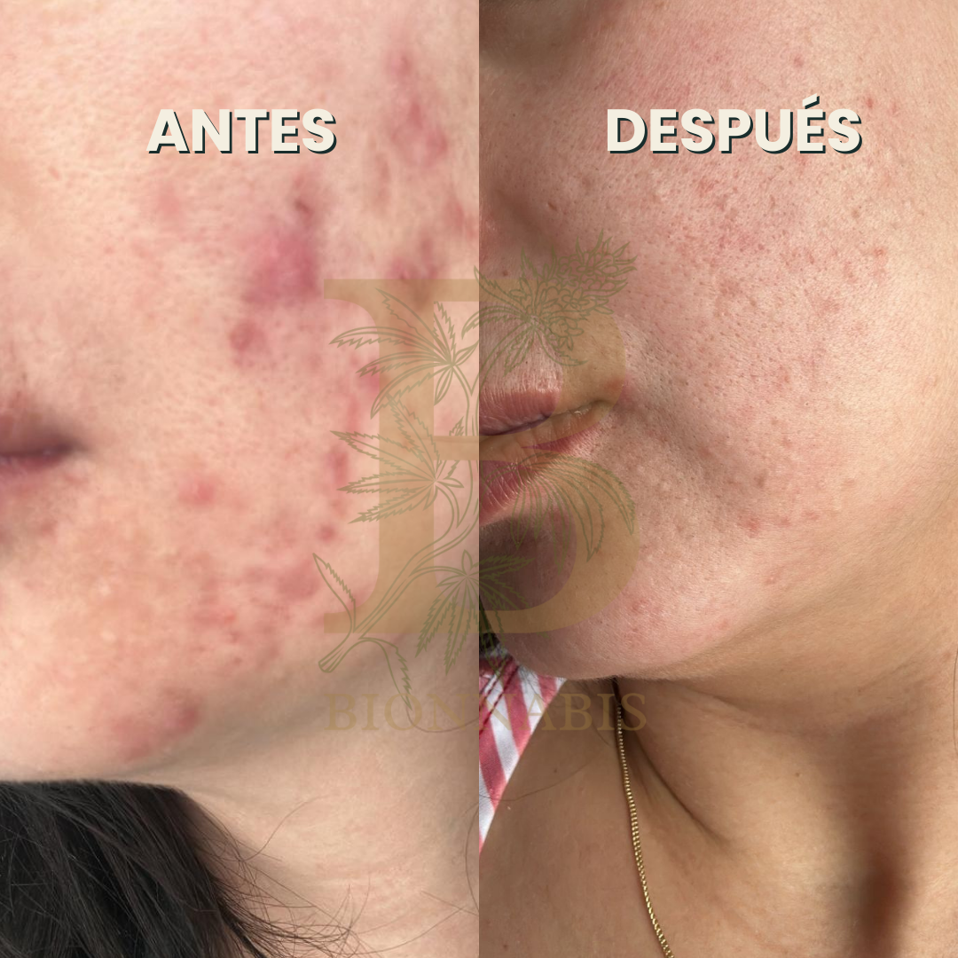 Duré más de 5 años con acné, en esos años pobre de todo purgas, medicamentos, limpiezas, jabones en fin de todo!!! Llegó con el kit 1 mes y nunca había tenido tantos cambios positivos en mi piel!!! Estoy muy agradecida con uds cambiaron mi forma de cuidarme y de ver la piel.