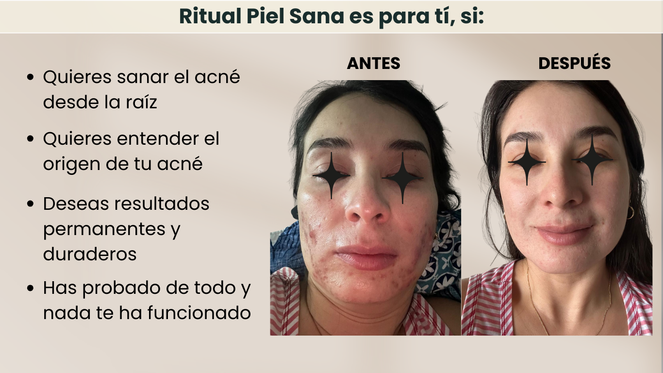 Además, incluye un ebook complementario con el paso a paso y hábitos esenciales para sanar tu piel desde adentro.